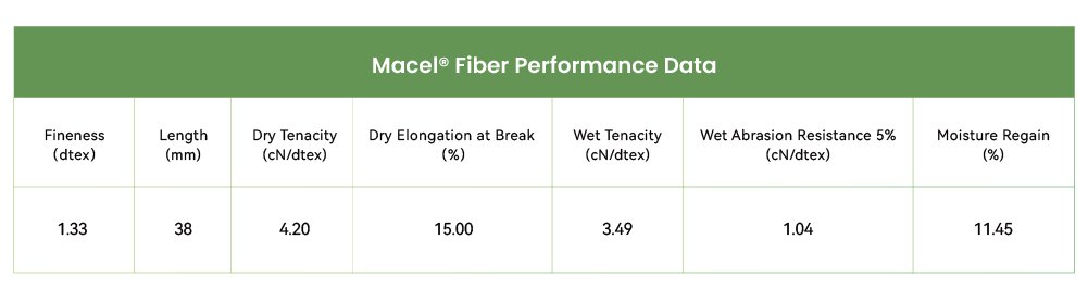 Fabrics made from Macel® are smoother and glossier, offering high strength, excellent stretch, and increased durability. The high wet modulus improves the fabric's ability to maintain its shape.